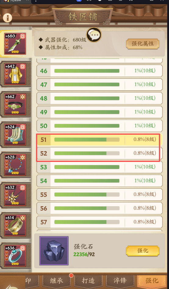 强化方面不用追求全部百分百,越后面越难点有个8就差不多了 优先开位置