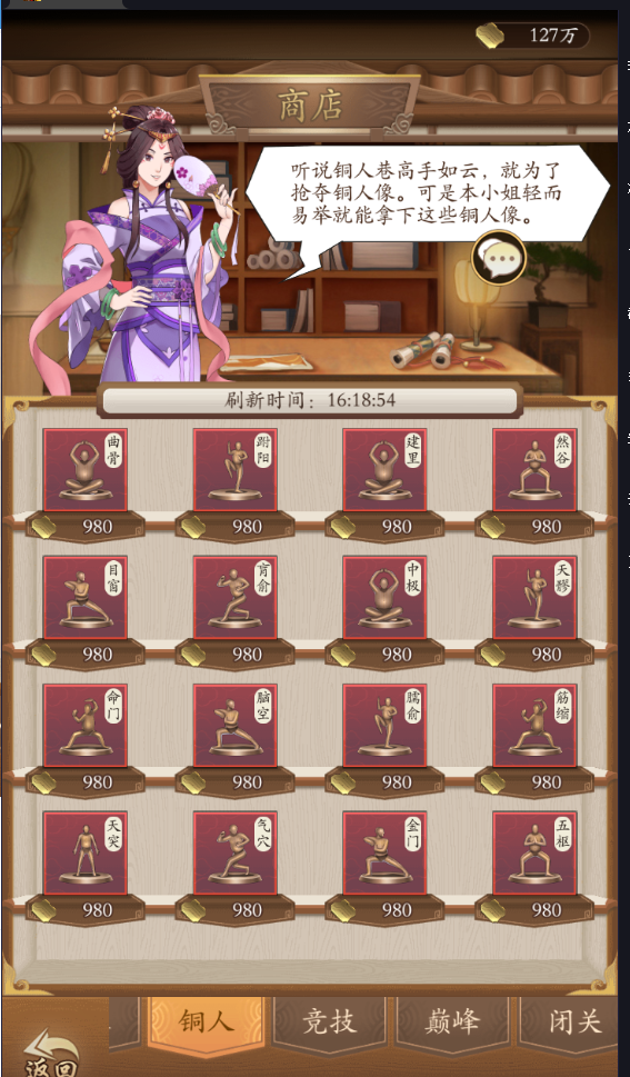 铜人商店可以看看这些效果,有个浮动值看见需要的可以开。最好吃满。