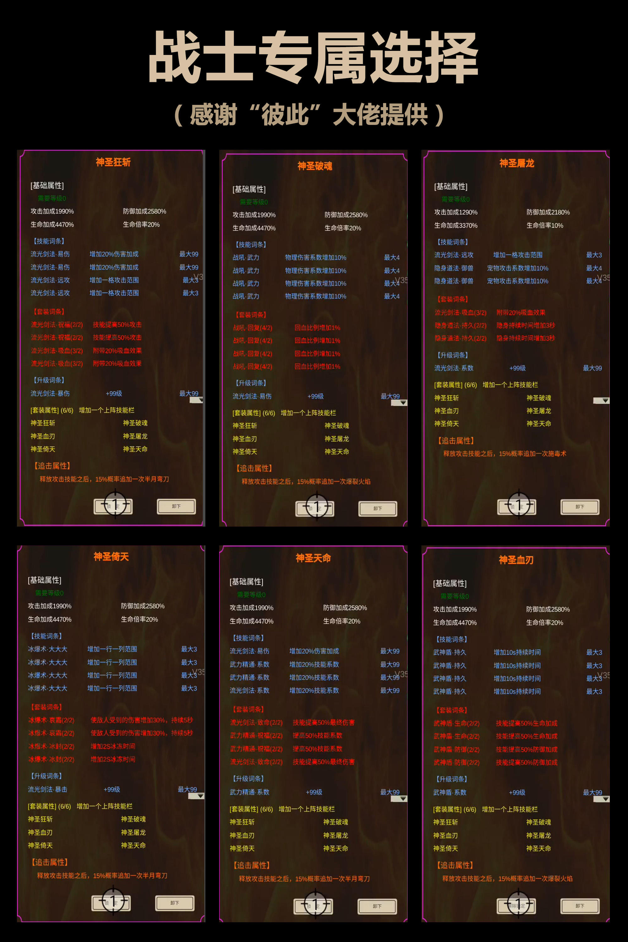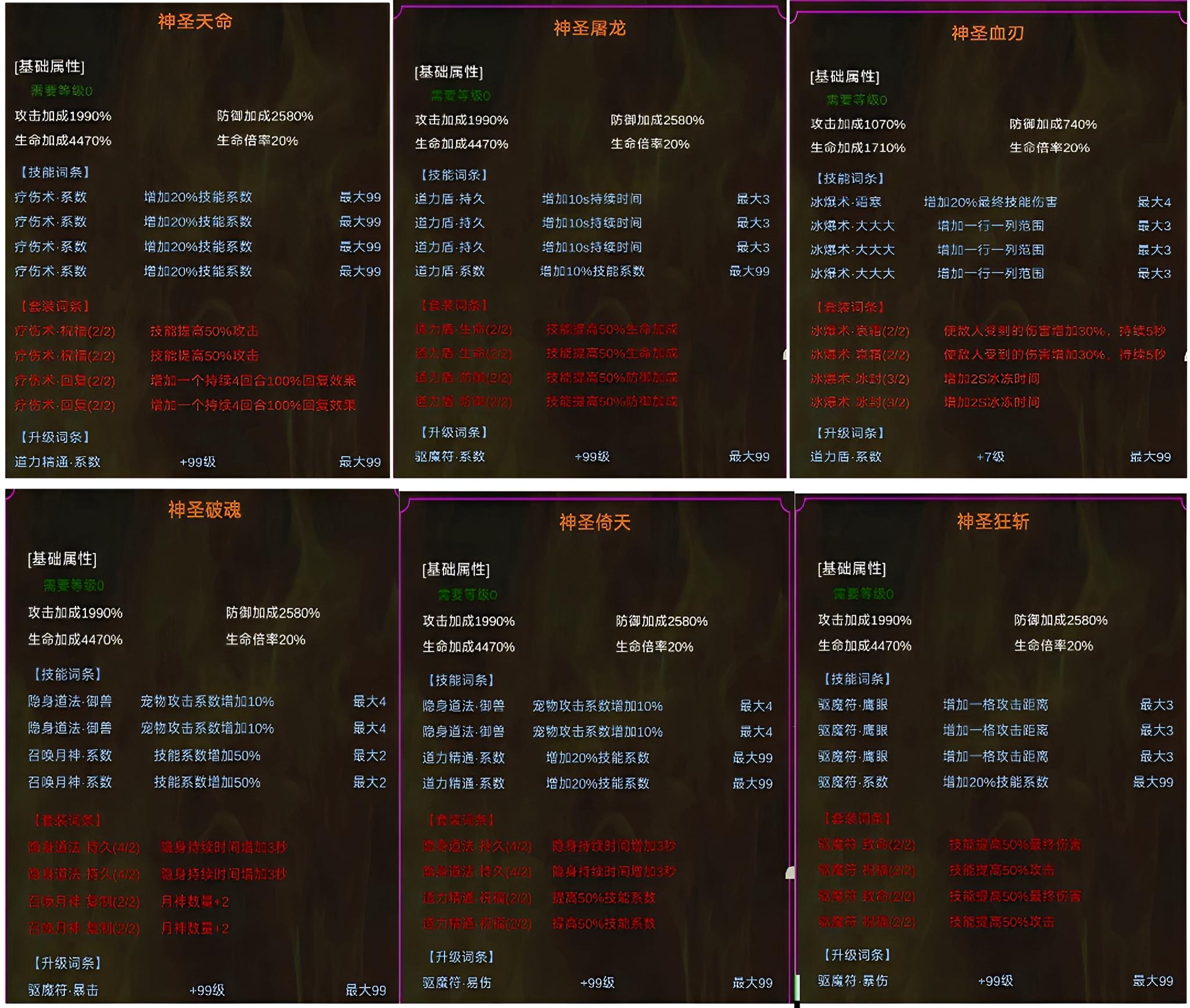 目前只讲一下神圣专属 后面还有传奇专属 不朽专属 等我接触到了再说