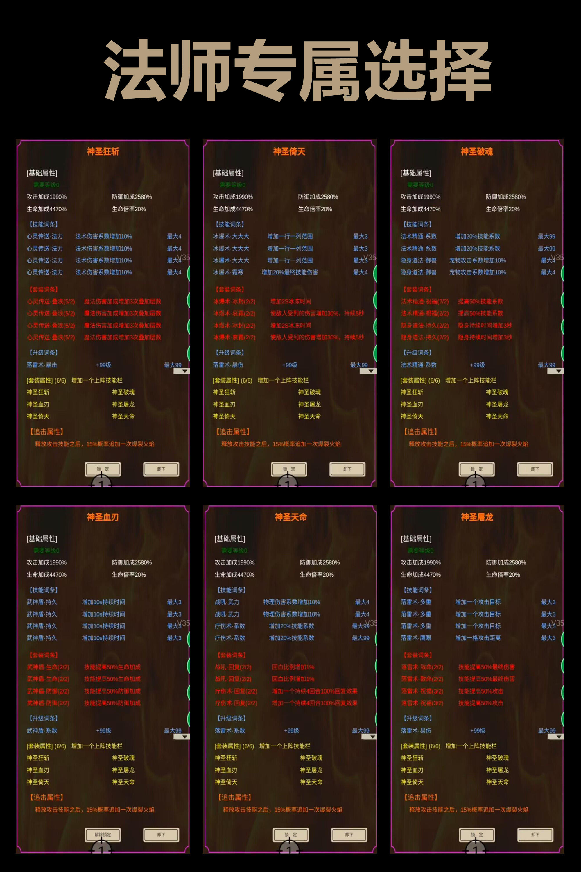 然后是一个升级自选 里面是三职业二阶的技能词条 系数 易伤 暴击 和 爆伤 套装属性都是祝福