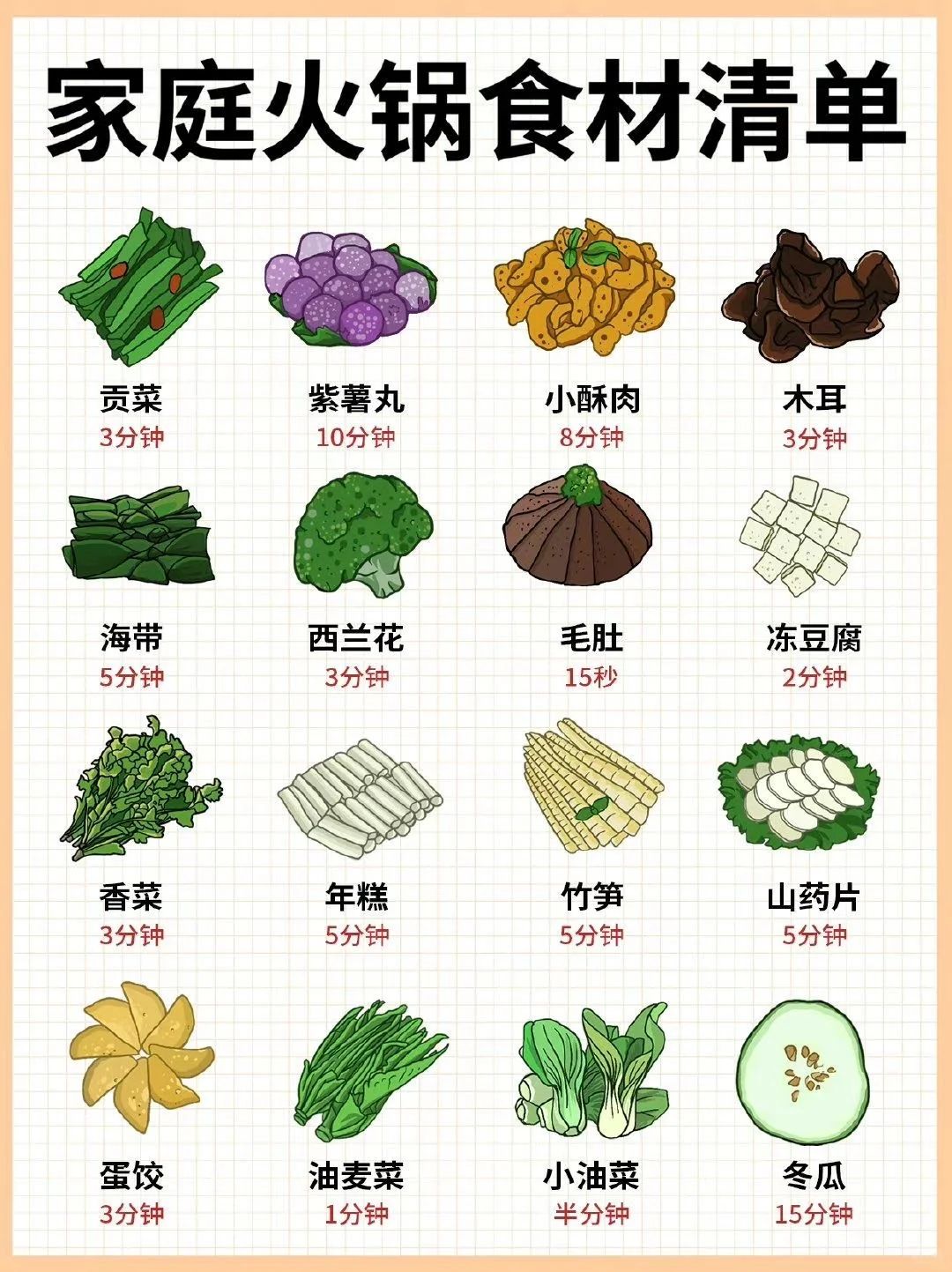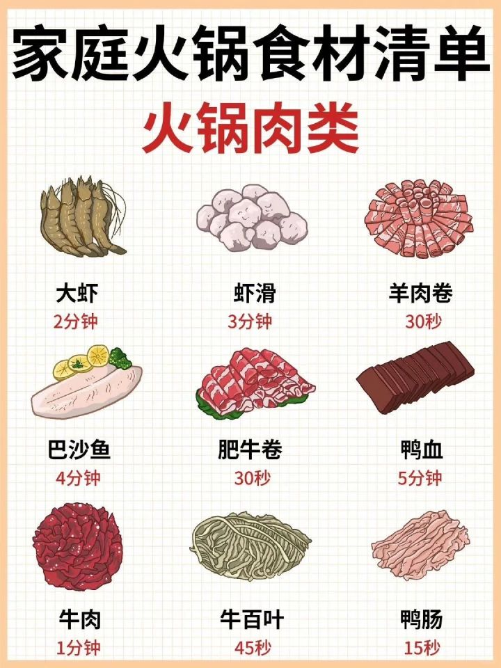 家庭火锅食材清单大公开!涮多久才最嫩?