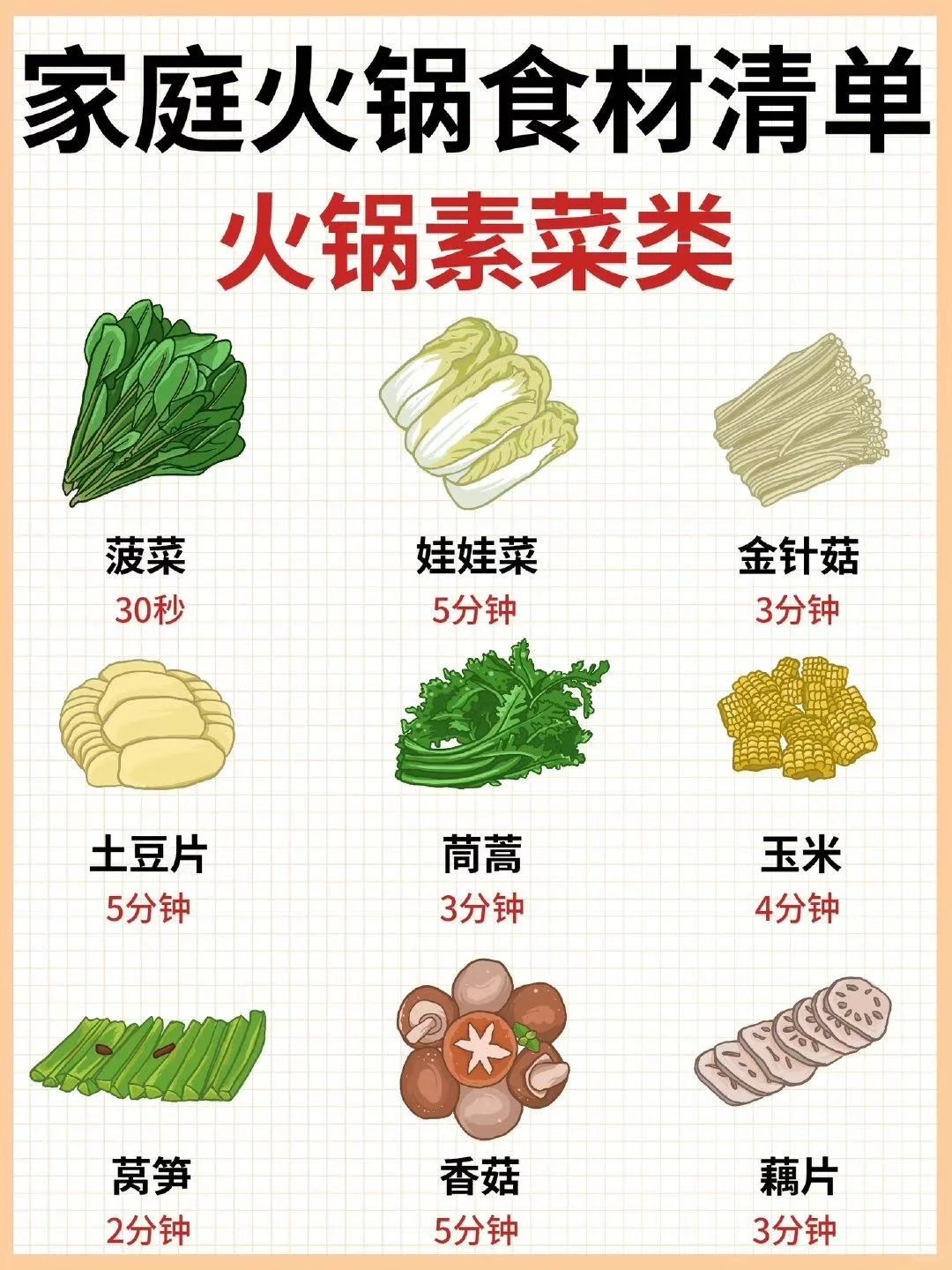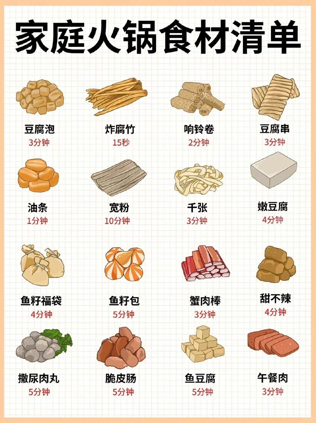 赶紧收藏这份清单,下次吃火锅再也不怕煮过头啦!你最喜欢涮什么食材呢?评论区告诉我吧!
