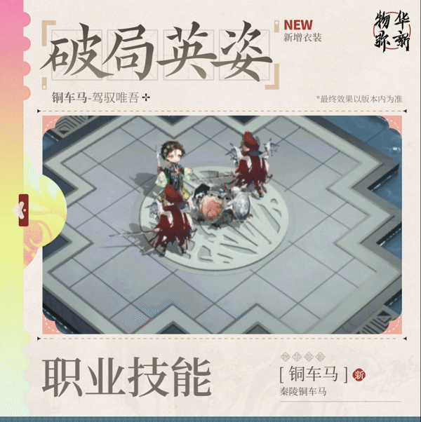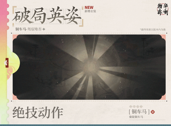 ※ 收集该衣装,即可拥有铜车马全新破局英姿、破局音效、派遣公司休闲动作。