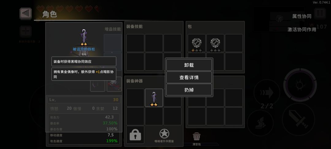 升级后会获得一次升华,升华说人话就是选强话类型,可以选择一次强化的类型,有攻击速度,攻击力,生命上限(只能选五次)等等之