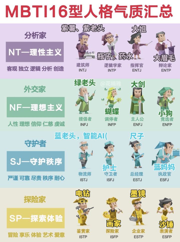 【心理辅导】MBTI人格形象+荣格八维+称号