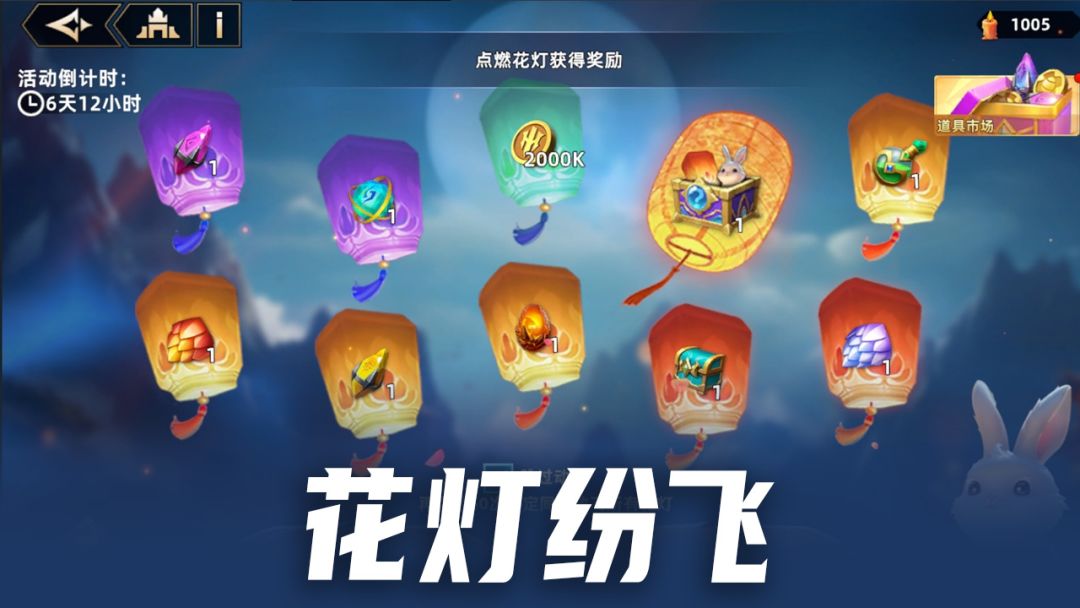 活动中使用【火烛】可放飞花灯获得随机奖励,有概率可触发一次放飞所有花灯,奖励包括英雄与灵兽宝箱、祝福自选箱、以及高级幻龙之鳞等!