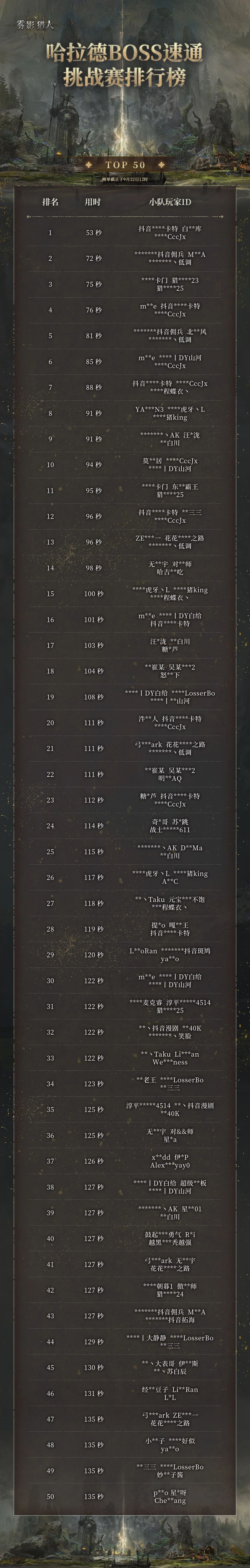 最终 TOP50 完整榜单已上线,快查看榜单图,解锁你的排名成绩!