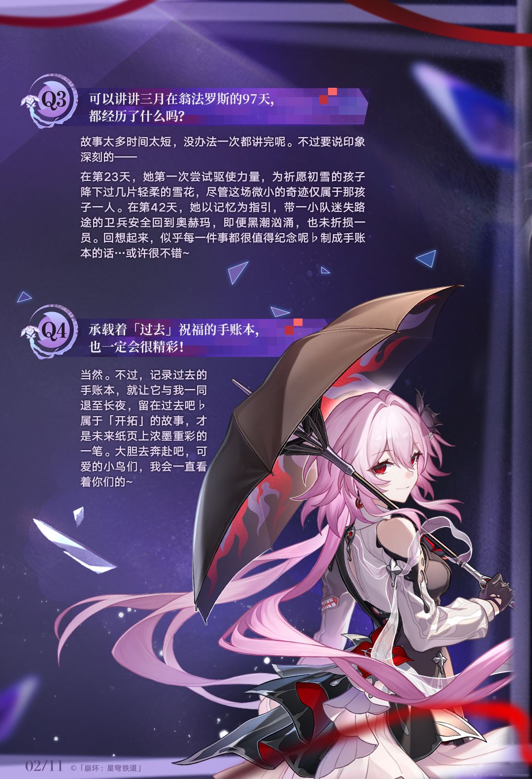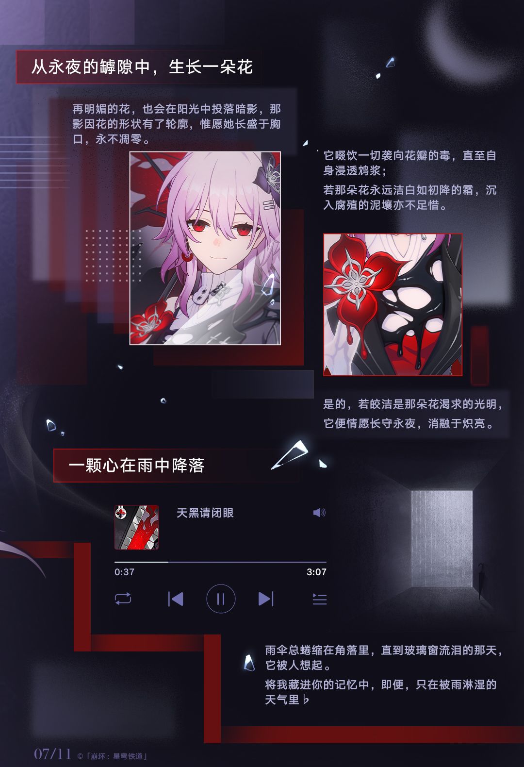 「如果有一天,三月七的记忆被污浊浸染…我想我会毫不客气,用忘却的烈火焚尽所有,不留一点痕迹♭」