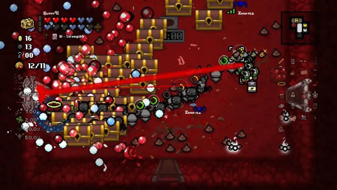 我现在仍记得,在初中玩盗版时获得了蓄力喷眼泪的关键道具,后面不断增加伤害与蓄力速度,再加上当时看不懂大多数介绍,总之就是胡乱一顿拿,最终蓄力满屏的眼泪。