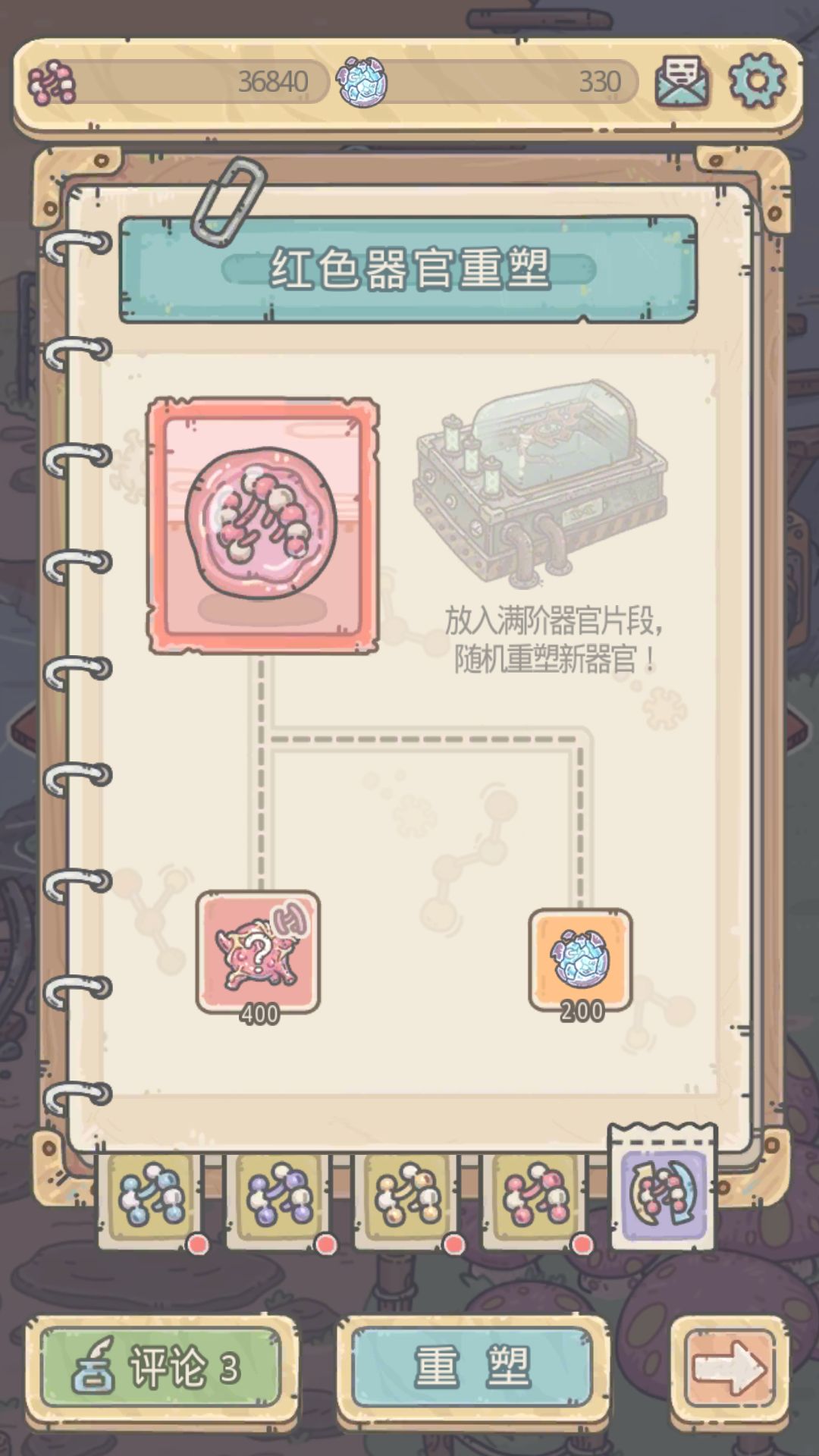 -任意红色器官基因锁改造到满级,可解锁红色器官重塑