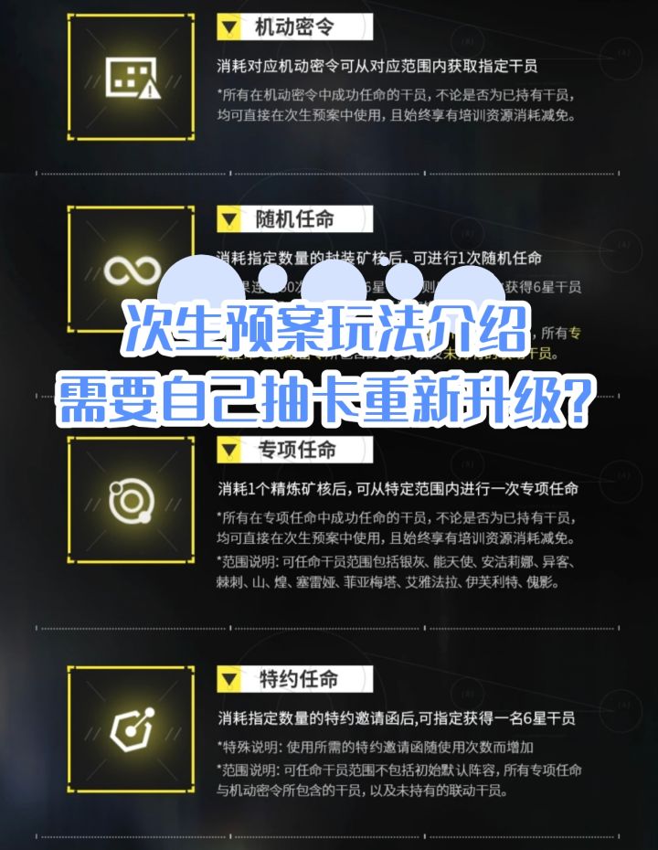 次生预案玩法介绍,需要自己抽卡重新升级?