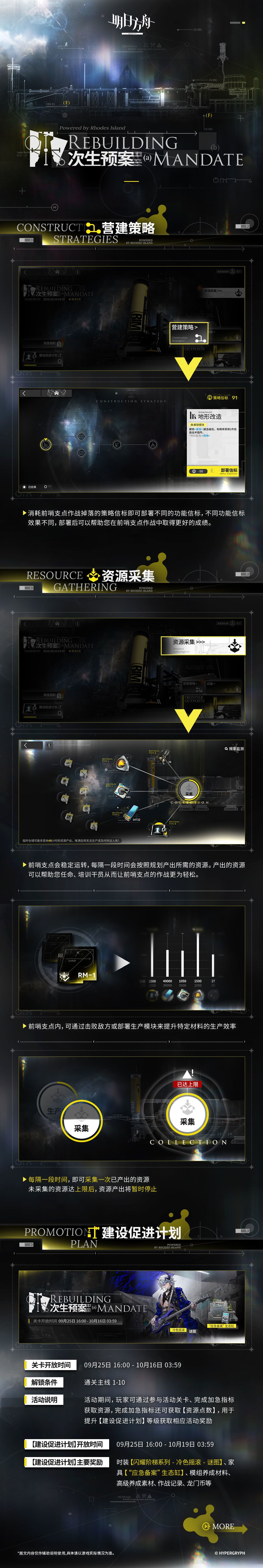 营建策略类似生息演算的被动。需要消耗资源升级。关卡作战提升生产效率,会生产道具给干员升级。然后有上限。需要按时收菜。
