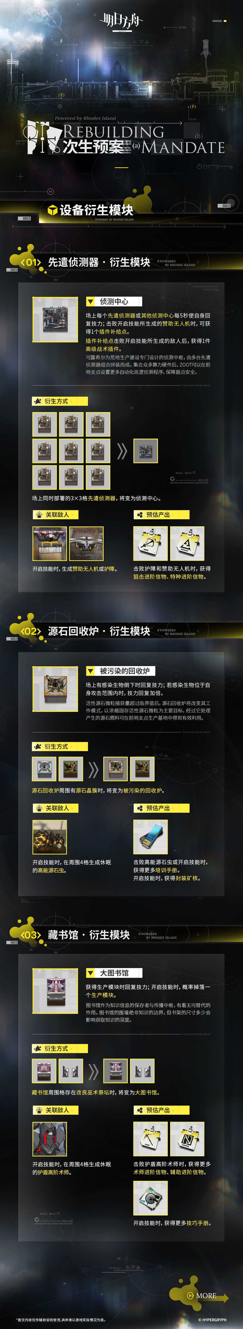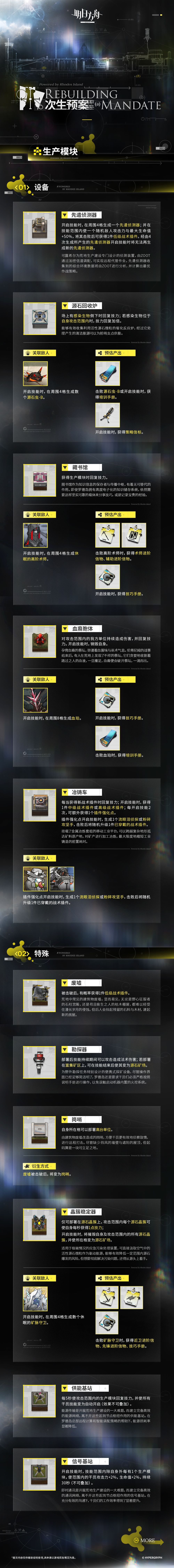 生产模块生产资源,关卡结束后结算成生产效率。生产模块有特定组合。