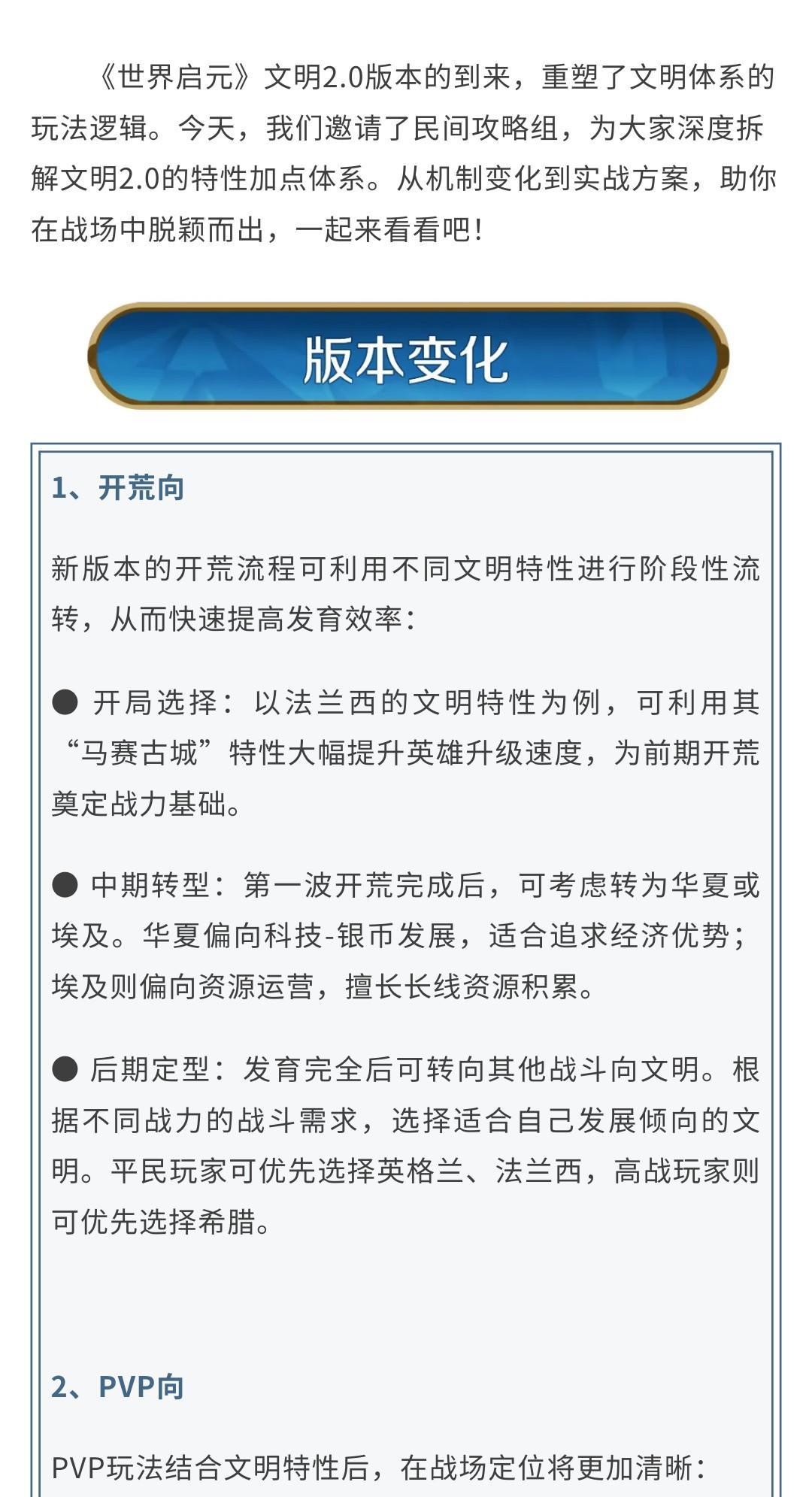 攻略分享丨文明2.0特性加点深度解析,助你制霸新版本