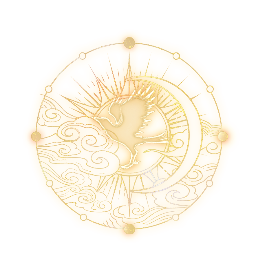 头饰·神师光相(男款)别具匠心,金色光轮之中,祥云流转,托举日月,中央神鸟翱翔,三者交融成和谐而威严的图样,好似光辉普照,佩之更显庄重恢弘。