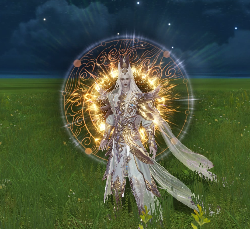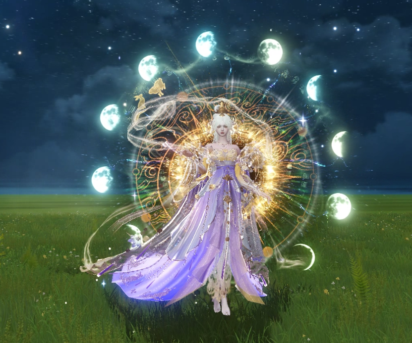 使用后,旅者即可召唤巨型日轮(男情绪)/巨型月轮(女情绪)悬于天际,煌煌辉光遍洒大地,彰显日曜月华之无上权能。当两种情绪相遇,还会触发“日月同辉”的天地异象,金轮银盘交相映照,这是只有仙界才能见到的奇景!(移动、战斗不打断)