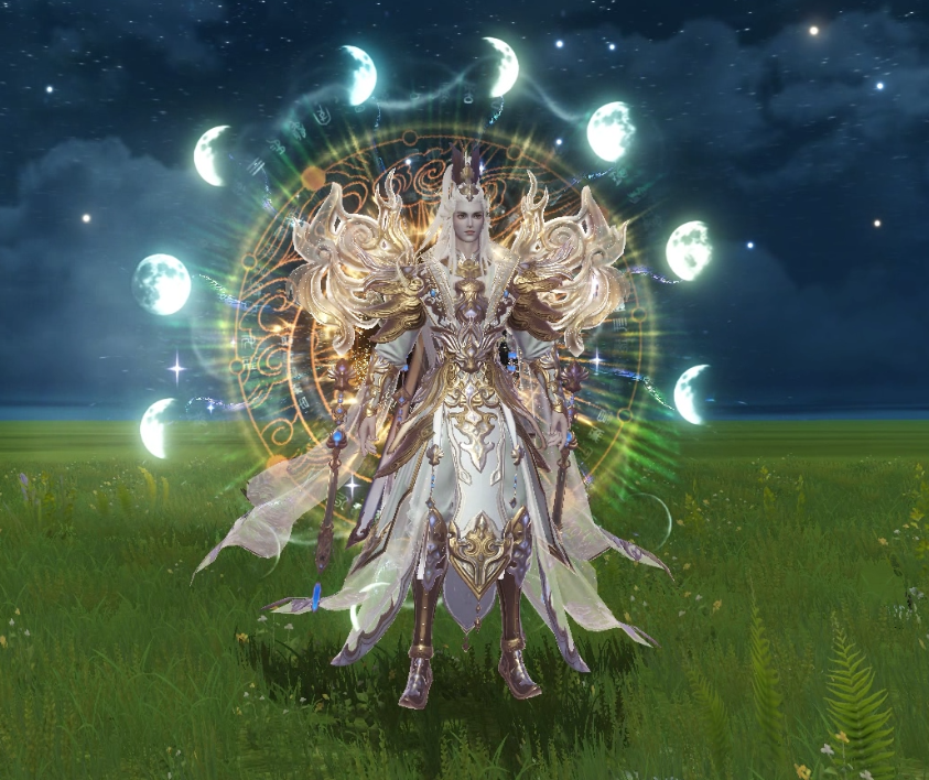 使用后,日光轮(男情绪)/月光轮(女情绪)自虚空浮现,如神权具现般环绕周身缓缓旋转,日芒灼灼、月华流转,彰显执掌时序的无上威严。(移动、战斗不打断)