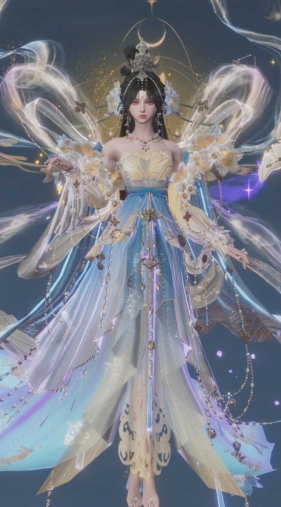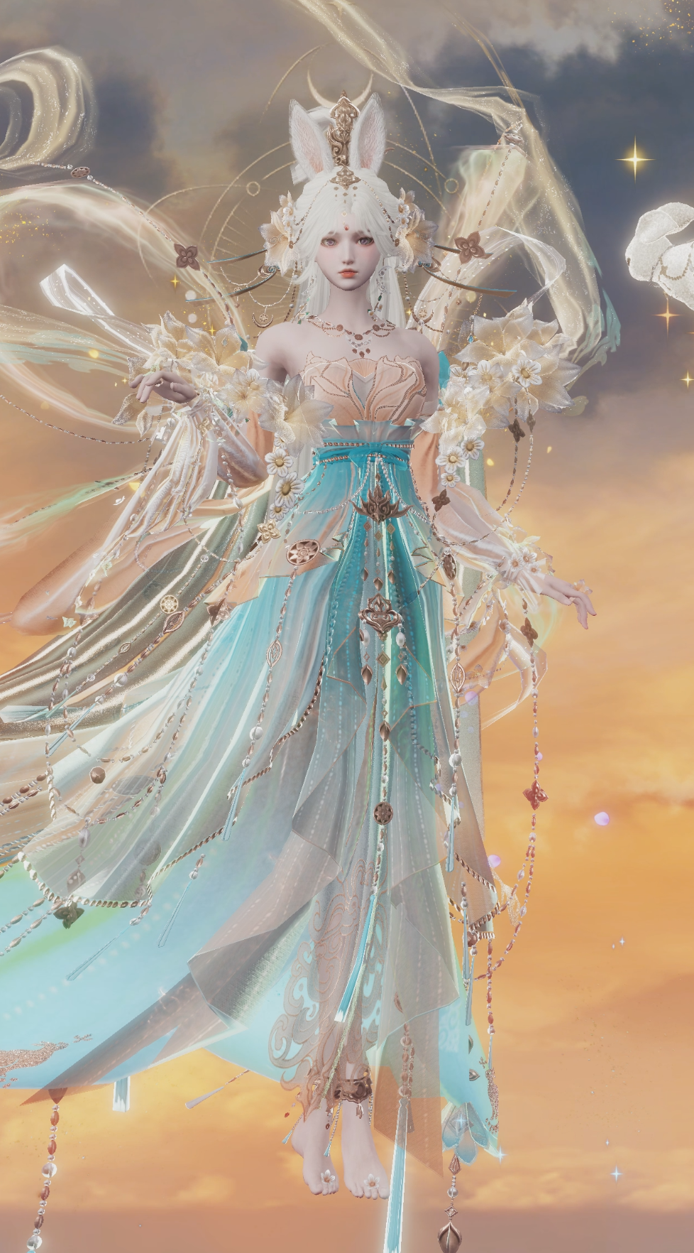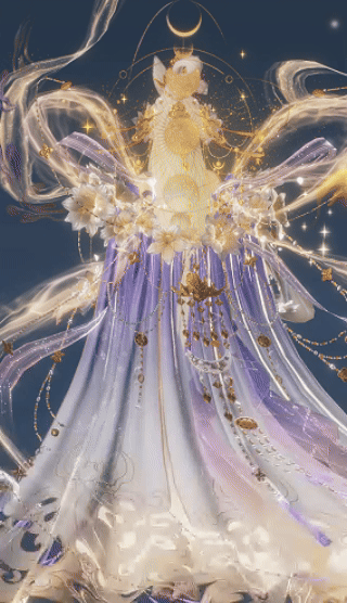 四阶背饰·琼英花君将金色云霞化作飘带轻柔环绕在周身,朵朵灵花受仙气滋养尽情绽放,轻薄的云纱垂落在身后,仙气袅袅。PS:本期四阶背饰可在拍卖行交易,也可以在1250抽保底自选包中选择获取(即本期两个背饰中二选一)