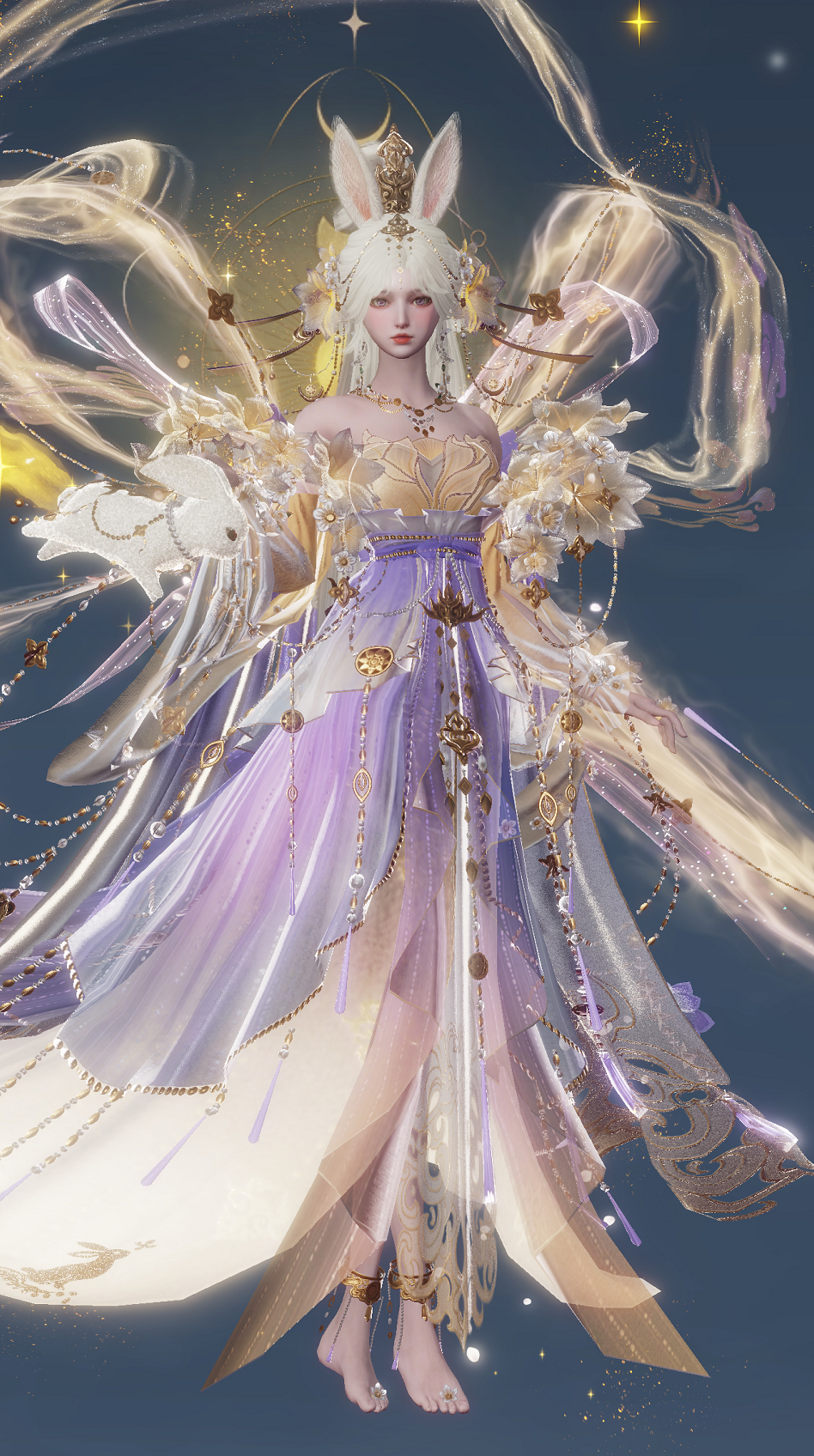 觉得仙家威仪过于肃穆?不妨看看这款腰饰·玉兔!可爱灵动的玉兔悬浮身侧,拖曳金色光效轻盈跳跃,瞬间拉近仙凡距离,更显亲切趣味!