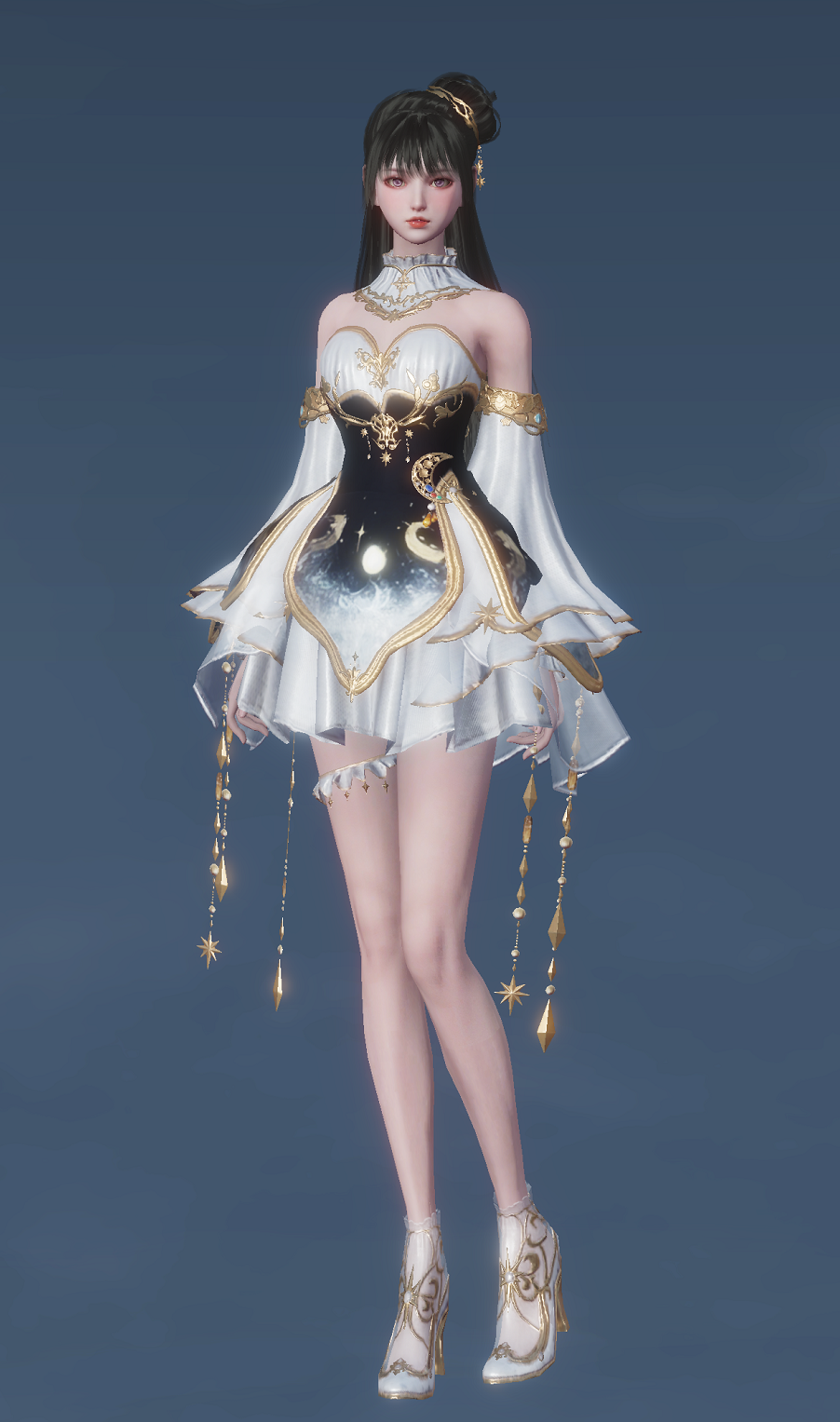 正如以往,本期的时装同样拥有极高的染色自由度。例如采用玄青与银白的搭配,则更显清冷孤高,仿佛遗世独立的仙界尊者。