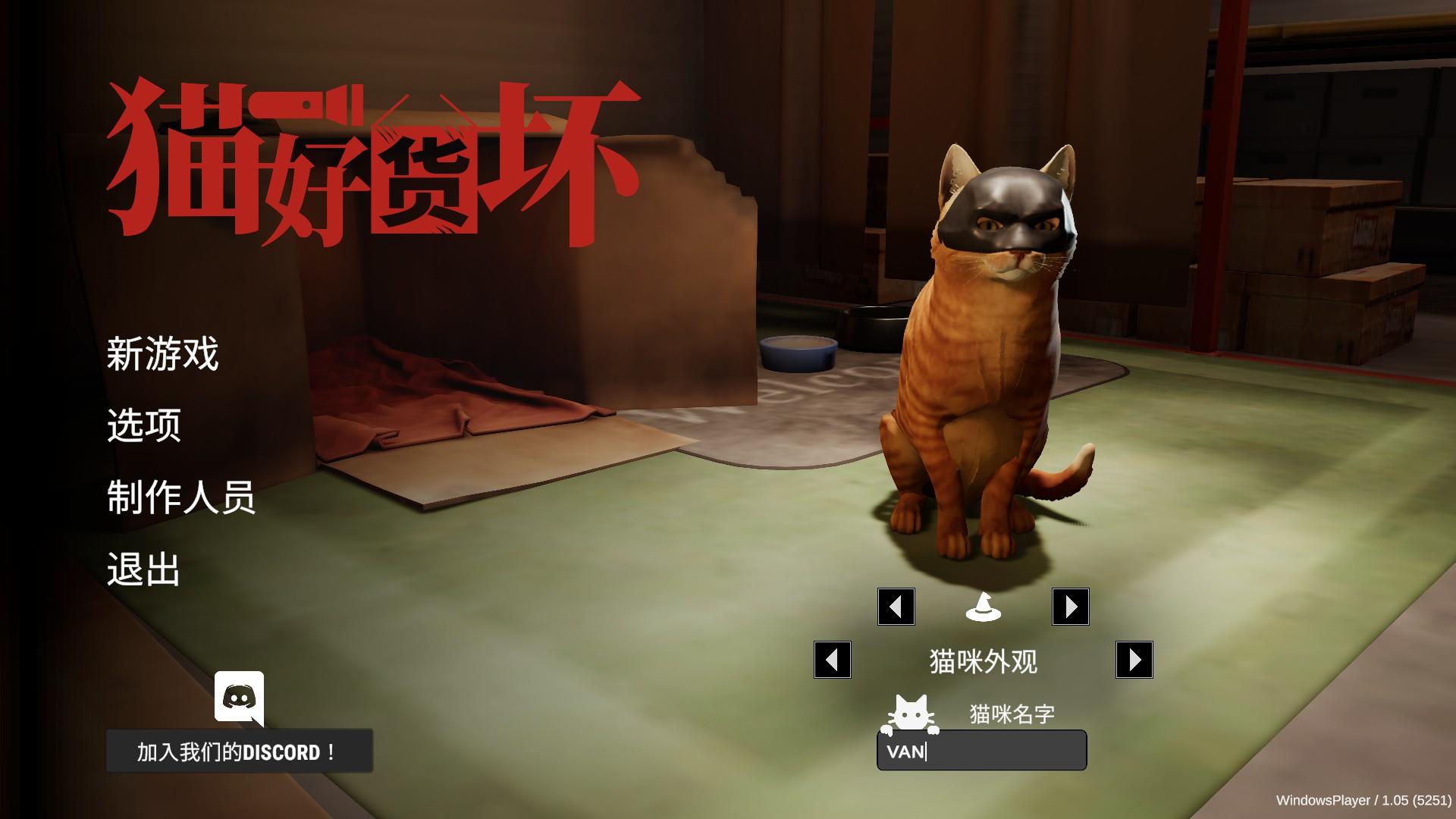 之前说的都是《猫好货坏》这个游戏带来的压力——有“猫主子”幸福度与赚钱养家带来的压力,还有仓库里的“鬼”带来的惊悚。但不要忘了,有可爱的猫咪陪伴,这就是我们一直坚持下去、不断挑战智慧与勇气极限去取货赚钱的动力。在游戏的主菜单,玩家可以对自己的猫咪进行外观和名字的自定义。虽然自由度没有达到捏脸的程度,但可以选择的猫咪花色和配饰还是挺丰富的(比如你可以像下图这样给猫咪选个哲♂学面罩然后取名为VAN)。这个游戏的猫咪造型和名字都是随时可以改的,能让你充分享受撸不同猫咪的乐趣!