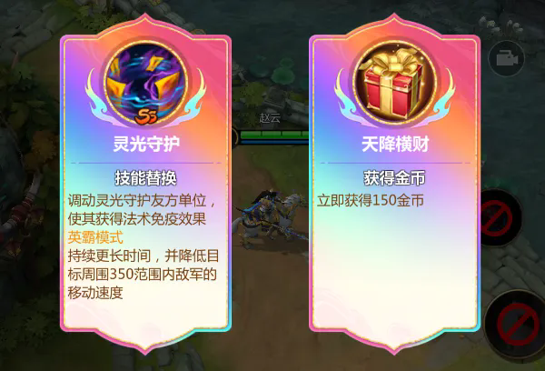 获得「技能替换类」时若不想要,对应的「天降横财」选项会根据获得的技能位置提供不同的金币数量,基础技能提供150金币,终极技能提供300金币。