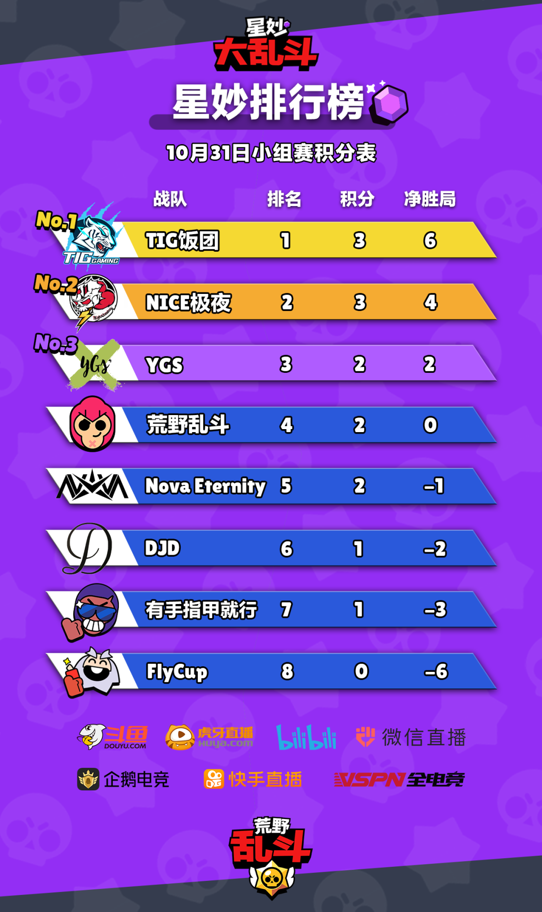 在昨晚的星妙大乱斗宝石大亨A组小组赛之中,豪强角逐,名局连连,把把都是神仙打架,精彩瞬间让解说惊叫连连,在接近4个小时的激烈对抗后,TIG饭团、NICE极夜、YGS和荒野乱斗目前占据了前4名,但这远不是庆祝之时,今晚各参赛队伍将继续展开殊死搏斗,A组的4位幸运儿也将在今晚正式诞生。虎牙直播间 425160