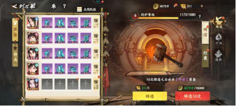 二、装备体系:通过剑心冢,用“剑心令”来铸造装备。同时通过装备的升级和进阶提升装备的品级和属性,从而提高侠客的战力。