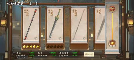 二、神兵体系:神兵作为侠客必备的武器,是侠客战力养成的关键部分,侠客12星之后才能开启,除了能提高单个侠客战力外,侠客图鉴还可以提升整体战力。