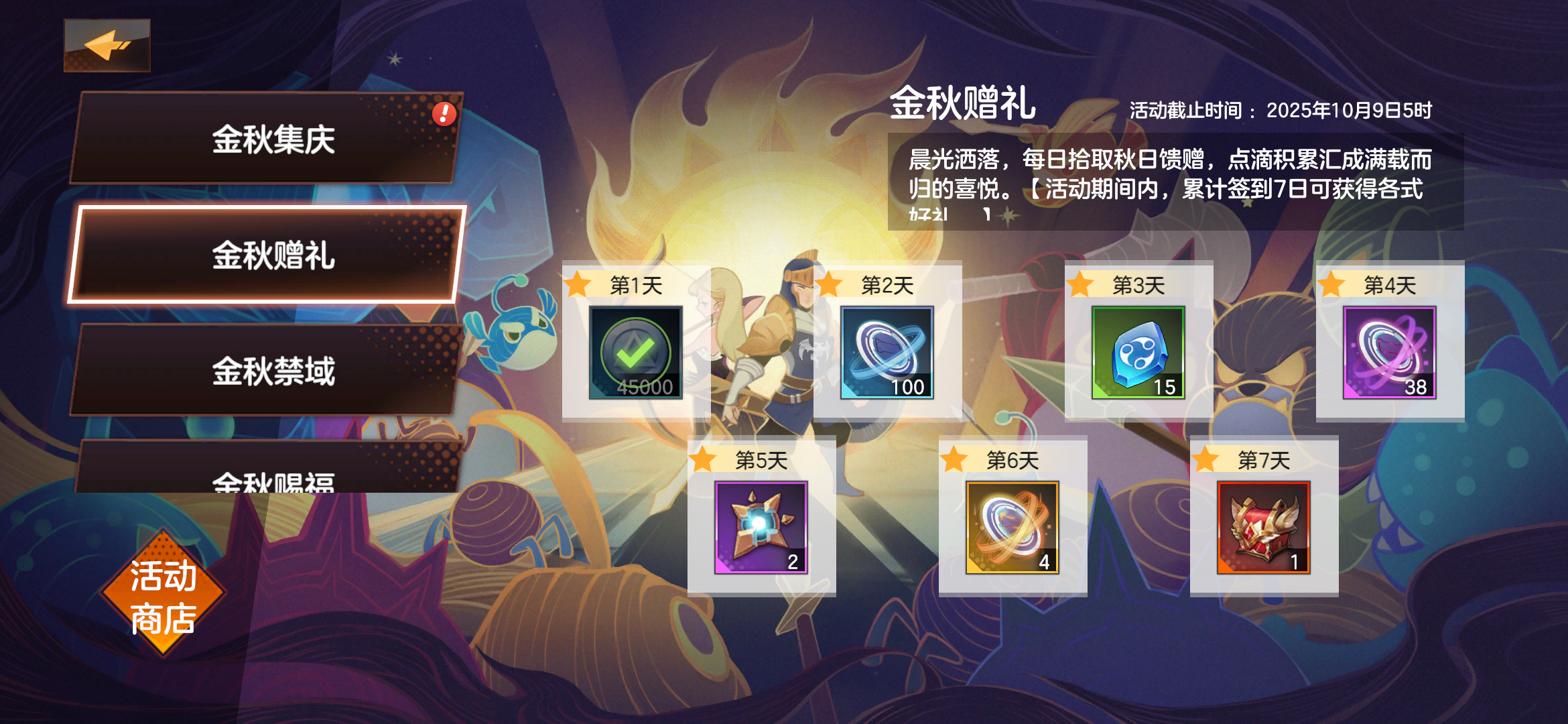 活动开放时间:2025年9月25日 维护完成后 - 2025年10月9日 5:00