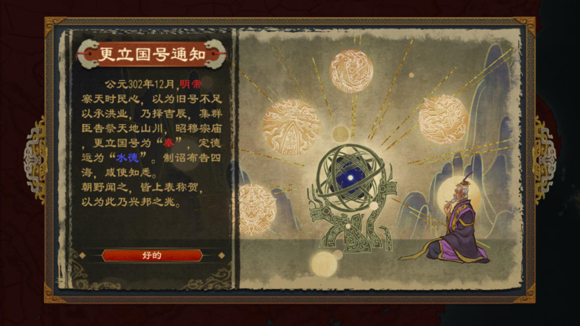 在河东地区存在都城或陪都时,将激活“建号有晋”战略,若我方为王朝天子、量级达到战国,且统一了河东、上党、太原地区,则满足更改条件。