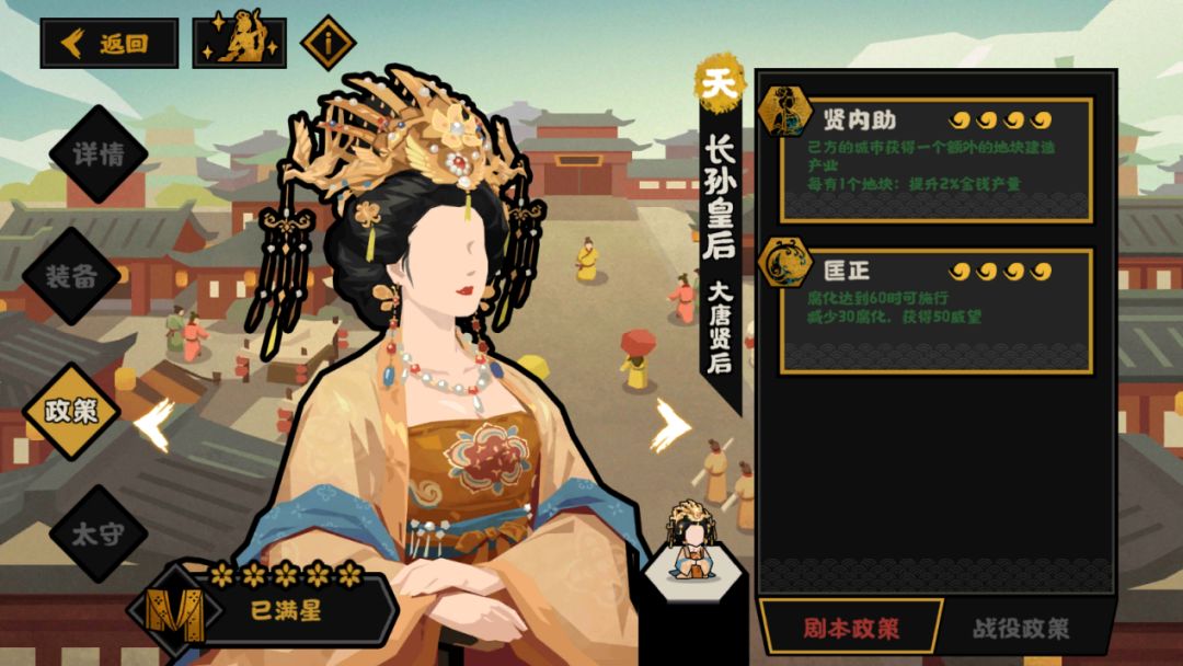 名臣核心政策,政策施行需要3野兽/醴/士子。
