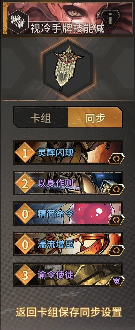 同步如上,谕令、精简命令可换,增压(消耗卡)不必刷新,总之就是带上低费刷新、屏障技能卡和增压