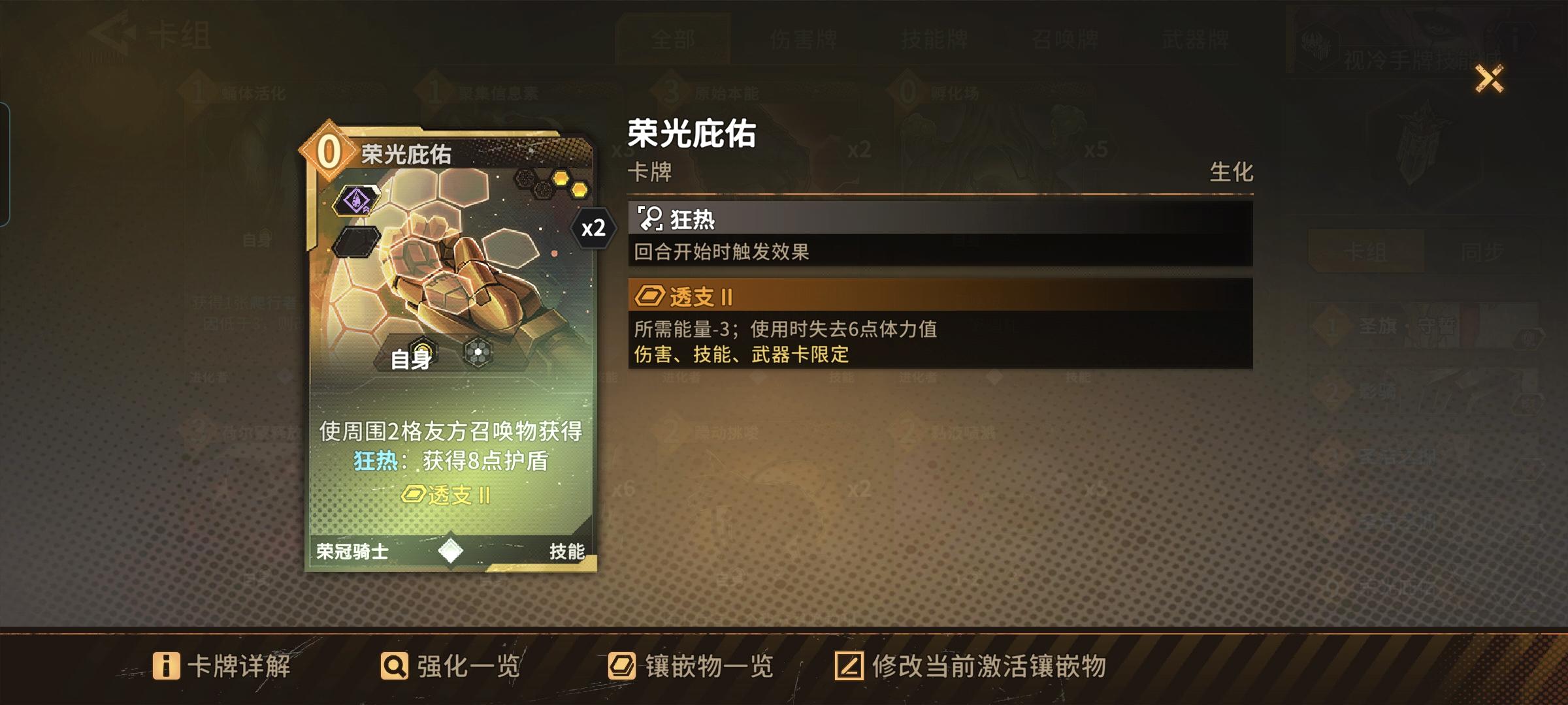 必需品,动力2或屏障,由于蘑菇主动技对能量刚需,动力1来替代动力2需要装备调整。推荐两张