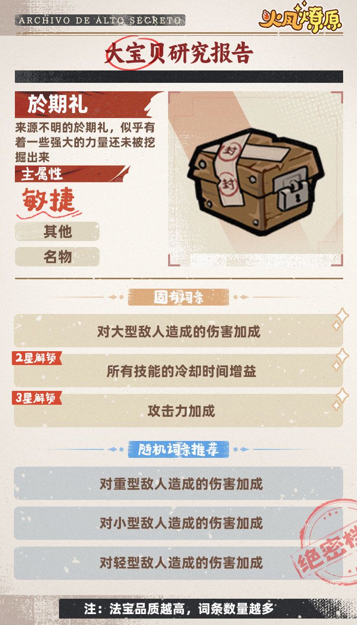 於期礼,和督亢图一样是一件对策性的法宝,针对关卡不同敌人的类型,进行有效针对,一定能达到理想的效果
