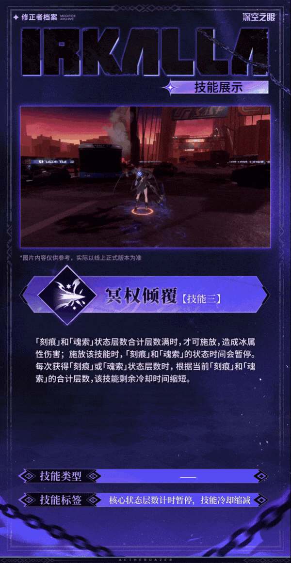 - 三冰队时 根据全场机制值获得对应的增益 伊里:独立伤害+14% 娜美/霜影/维达尔:零时空间独立伤害+14% 普攻后暴击+14% 诗蔻蒂/斯卡蒂:普攻后冰伤+14% 爆伤+28% 冰渊:能量获取率+14% 奥义满但未释放暴击率+35% 冰利:释放奥义/连携攻击力+14% 冰伤+14%(雪儿自带联动体系 无法实现三冰队 不计入)