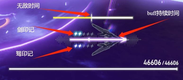 每次获得剑印记/驽印记时 都会获得一个0.7秒的无敌时间 就是最上面的黄条