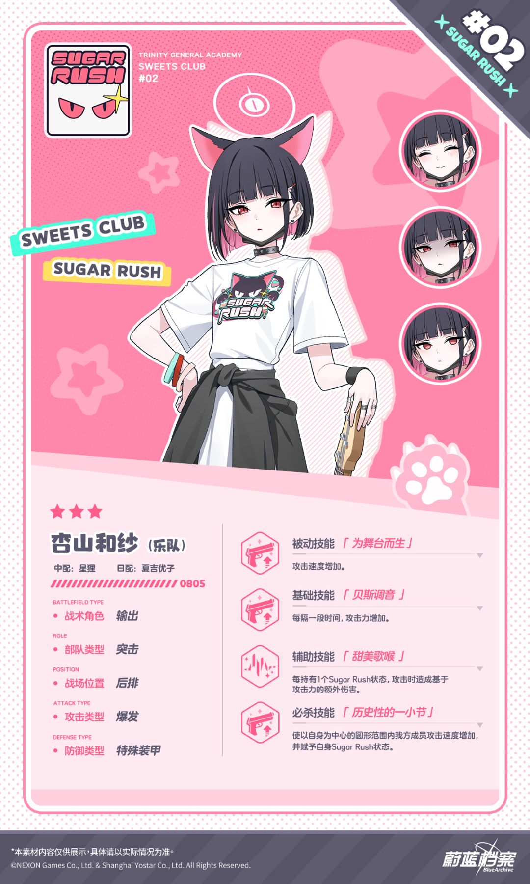 甜点部的成员,在火速结成的乐队【Sugar Rush】中担任主唱兼贝斯手。虽是因为一句失言才成了主唱,但她的性格不允许她食言。