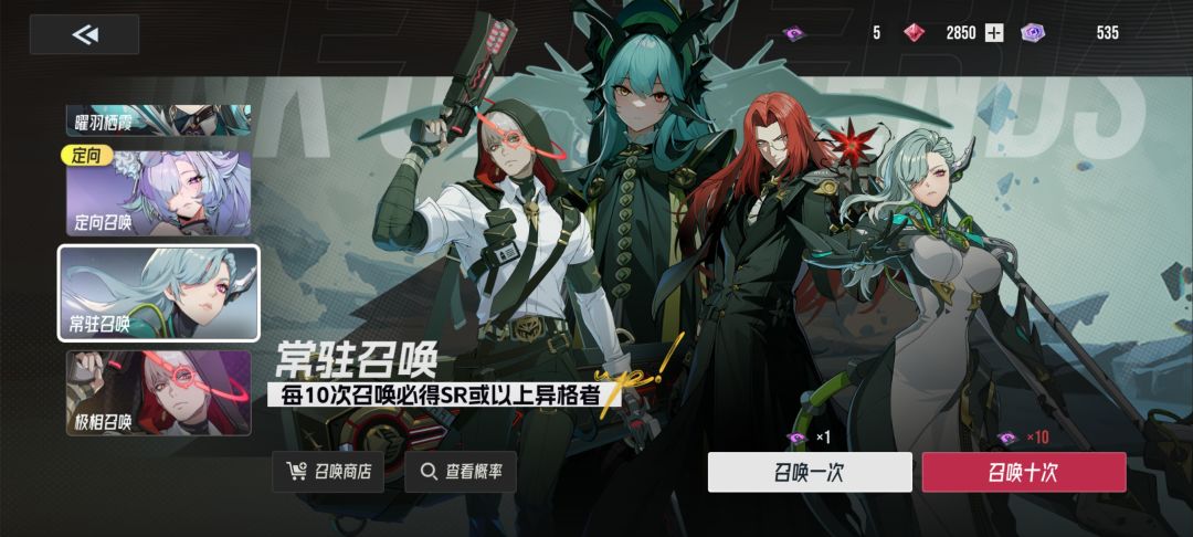 再抽常驻池,常驻池包含所有角色,看看能不能凑到合适的队伍,当然如果卡券不够,也可以跳过常驻池直接去抽新手定向池。