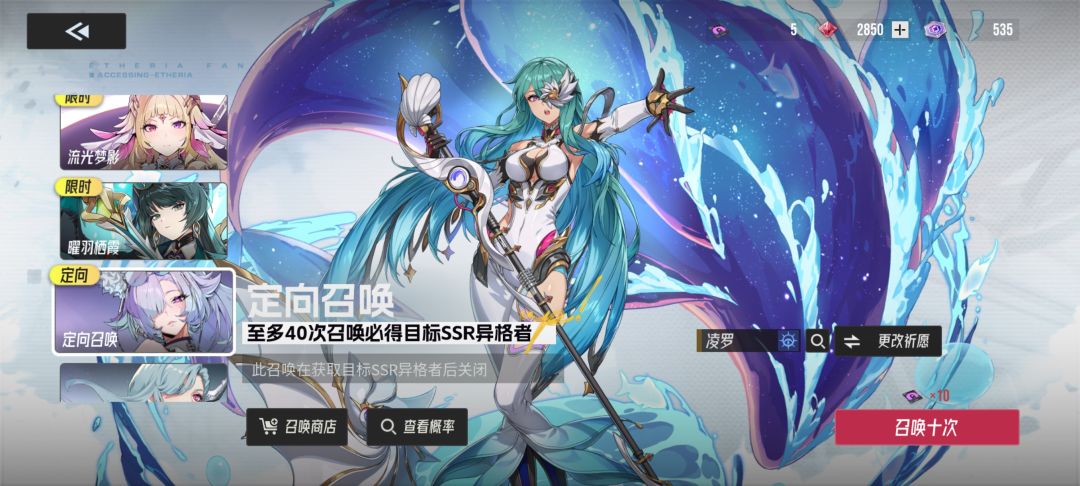 这游戏无论是哪种开局思路,新手定向池一定要留到后面抽,因为这个卡池40抽一定出指定角色,所以用来补配队是非常重要的。