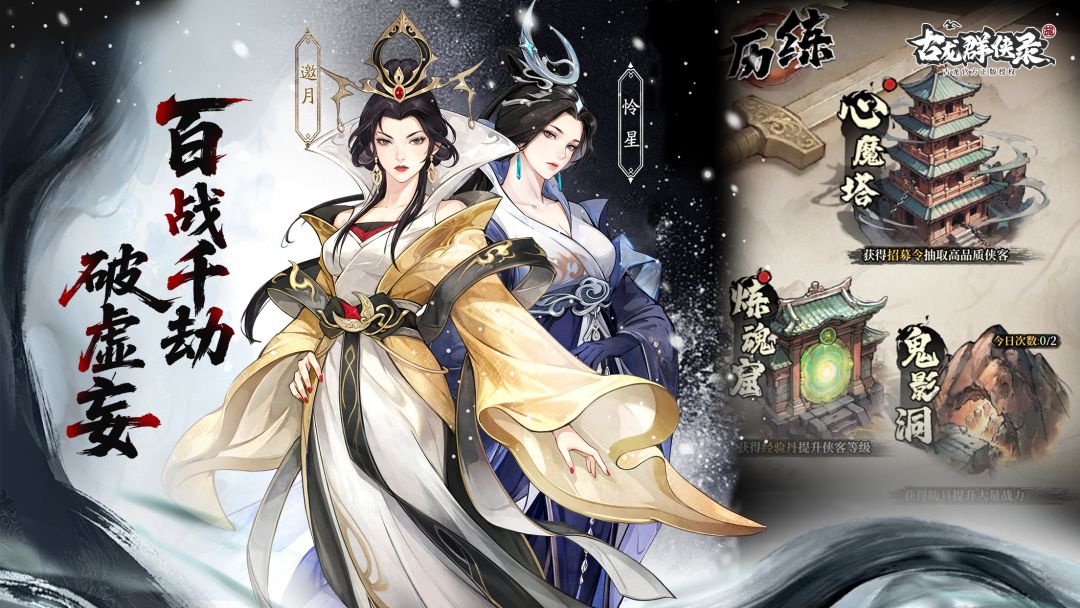江湖冒险讲究轻装上阵,面对【心魔塔】、【炼魂窟】、【鬼影洞】等层出不穷的玩法挑战,《古龙群侠录》摒弃传统战斗冗长流程,革新策略战斗体验,布阵即成杀局,出手即是碾压。一人当关,不如二人同心,邀挚友共探【机关岛】,联手共战机关人,尽显袍泽情谊。武林之路险象环生,诸多副本尽藏海量资源与武林绝学,助你战意奔涌,功力暴涨!