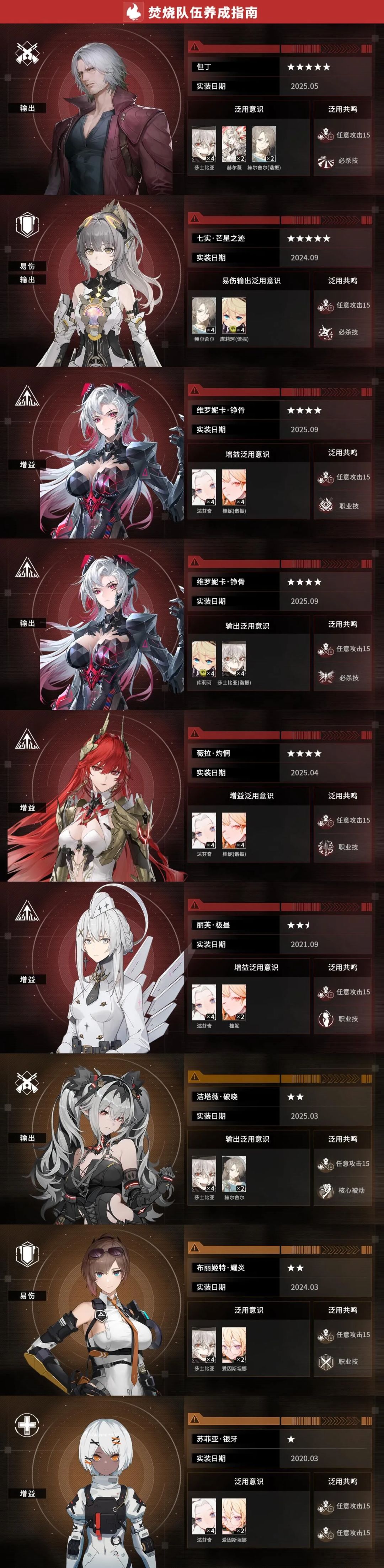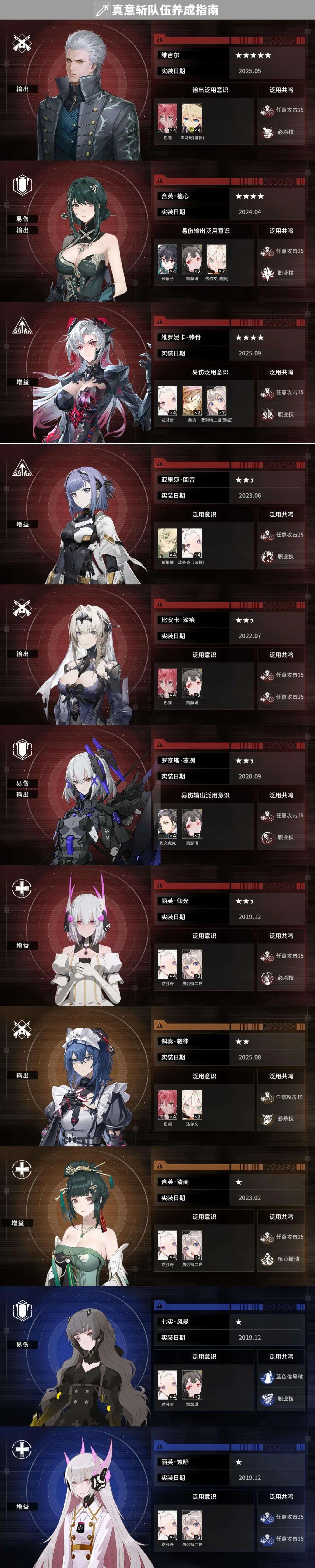 2.仅毕业阵容中的角色(或对于主要受众而言可进入毕业阵容中的角色),在该角色的多种思路完全不可能调和的情况下,考虑根据输出、易伤、增幅的不同功能为每个功能推荐至多1套方案。