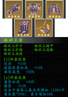 特效:受到的毒伤减20%,被攻击时有50%几率给对方施加1层中毒状态。