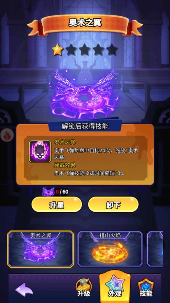 法阵有3个主要功能,分别是【升级】【外观】和【技能】,其中技能需要在中后期才能解锁第二个和第三个技能槽位,所以暂时不考虑。本篇仅对【升级】和【外观】两个功能进行说明。