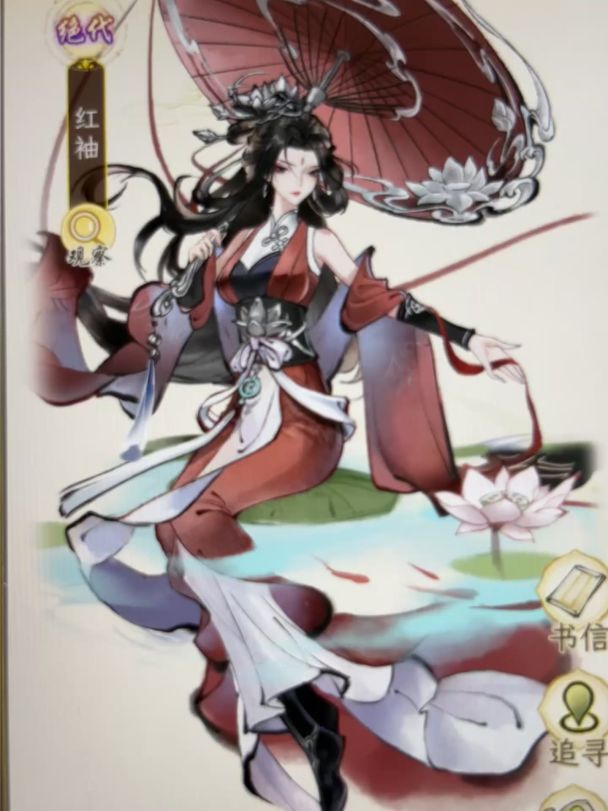 红袖:“落花有意,流水无情。”垂手抚弄荷花好优雅好端庄,一个强大且知性的女子,但是我能感觉到她有种隐隐的落寞,应该是个有故事的人吧。