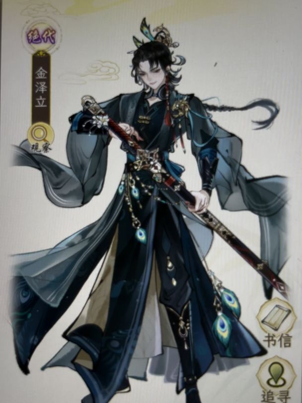 金统领:先是漫不经心打量这把跟了他多年的战刃,发现你在看他,便渐渐把目光转向你,然后冷峻的脸突然勾唇一笑。