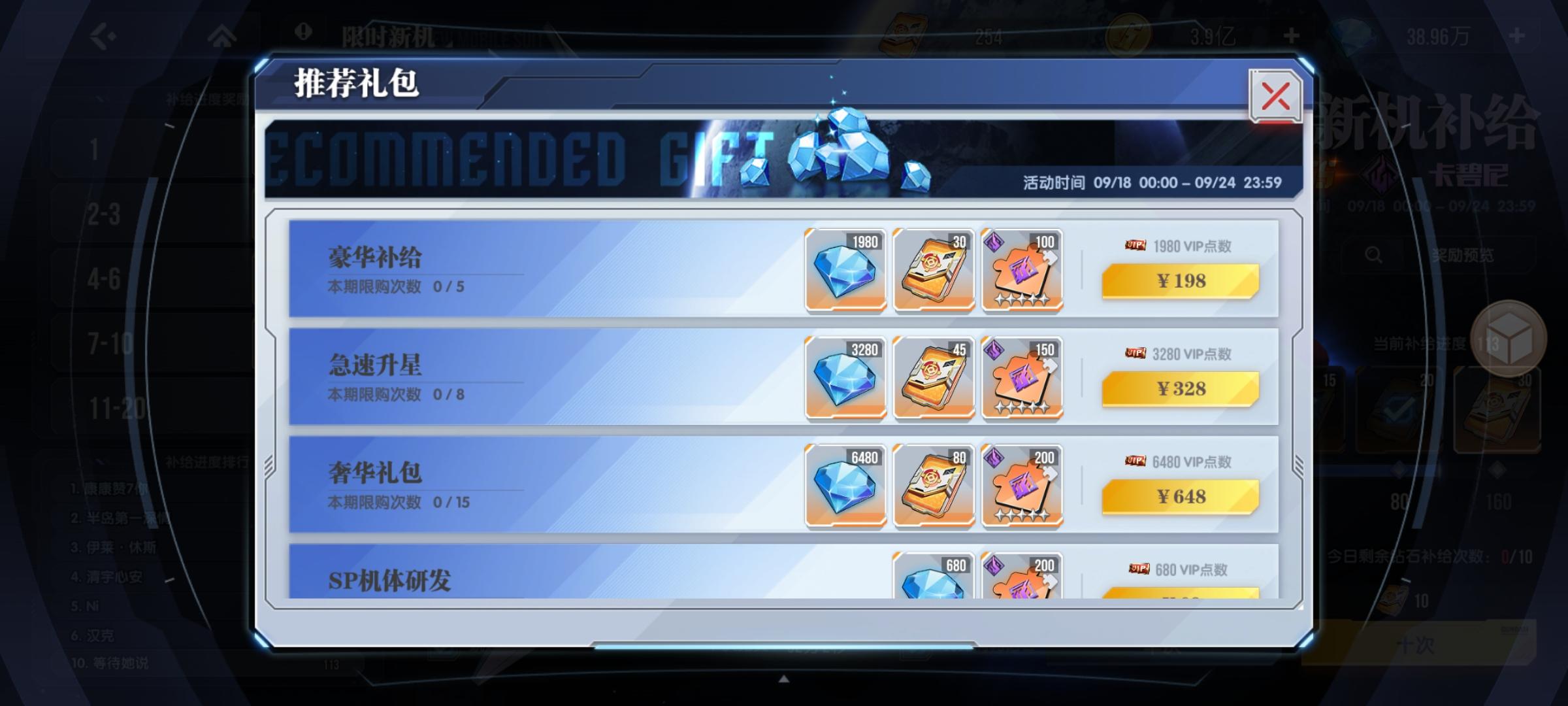 同样,遇到不怎么喜欢的机体,就每期活动抽到160就停手。补给进度奖励能返还80抽,在升星好礼里面能领到15抽,战令里面也有80抽,这样领到限定卷就有80+15+80=175抽,算是免费钻石还能攒下来92抽。而且战令里面还有一个限定的本体,198战令实在是目前游戏里最值得买的礼包了!