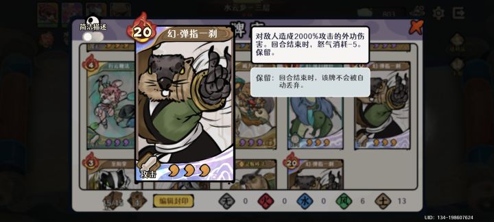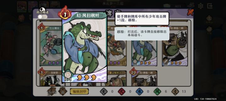 尽管秋风扫落叶是张技巧卡,但是配合上剑魔卡组的高怒高攻流,特别是第二张幻弹指一刹(无脑选),真的强无敌,整套卡组攻击次数加1,相当于省下了(6破天+6弹指+3猴棍+2玄空掌)×2=34怒气,有擎天也不用担心开局摸不到,本体打完之后移除擎天就摸不到了,也就不用担心卡剑魔的无形剑气