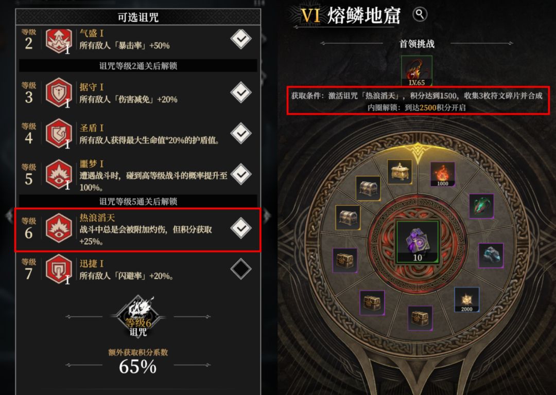 每次通关后可以逐步激活诅咒,获取额外积分加成;激活对应诅咒,并完成相应事件,还会获得地下城的唯一装备哦!