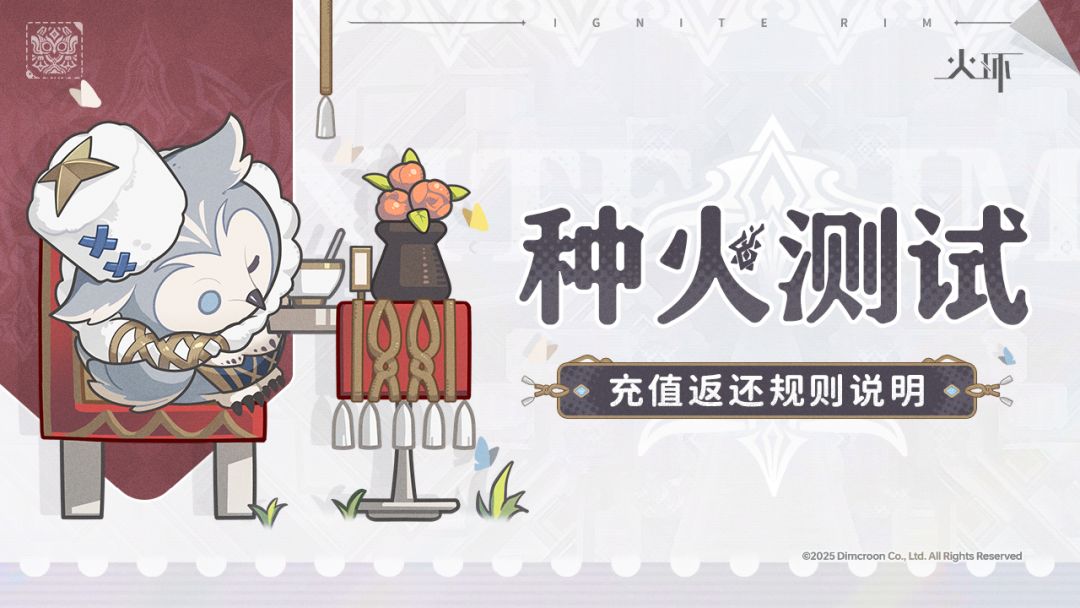 •「种火测试」充值返还计算仅针对游戏内现金支付金额,此外各类活动赠送的或使用商品后可领取的道具(包括但不限于:充值双倍奖励或充值额外赠送内容、使用特典后获取的道具、系统赠送、运营邮件)均不计入充值返还。